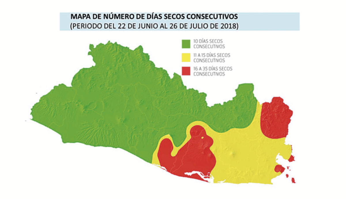El 25 de julio de este año, el MARN reportó 11 días consecutivos sin lluvias en la zona oriental, proporcionales a una sequía meteorológica débil en municipios como Chapeltique, El Sauce, San Miguel, Concepción de Oriente, Las Pilas, Metapán, Planes de Montecristo, Pasaquina, Nueva Esparta, Ostúa, Angue, San Francisco Gotera y Jiquilisco.